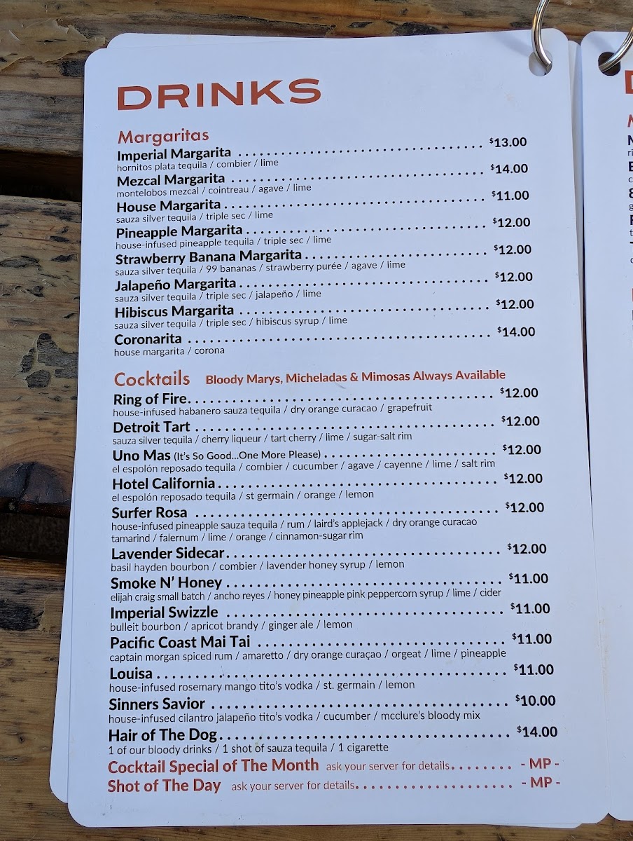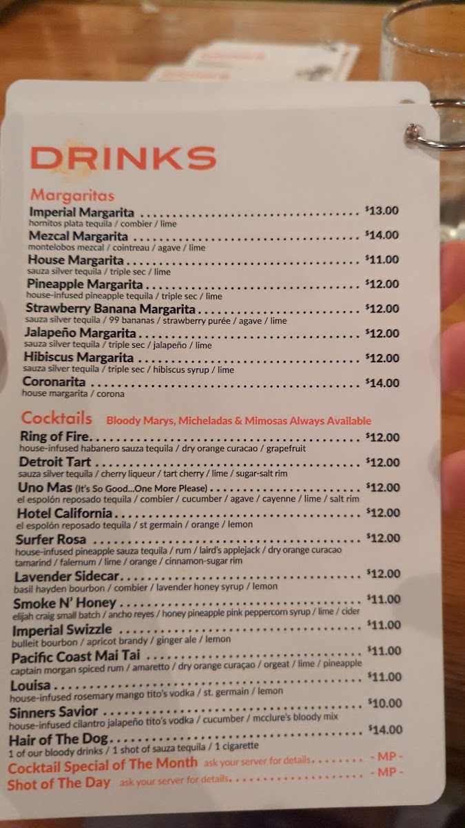Imperial prides itself on a menu that celebrates the rich variety of Mexican-inspired cuisine alongside a selection of creative cocktails. The highlight of the drink menu? A tantalizing array of margaritas, each crafted to perfection. From the refreshing Mas Imperial Margarita at $52, to the spicy kick of the Mas Jalapeño Margarita for $48, there’s something to excite every palate. For those seeking a non-alcoholic treat, the Margarita Especial offers a ritual tequila alternative for only $9.